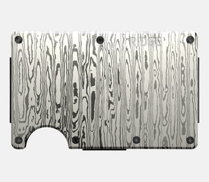 We designed our Damascus Wallet as an homage to the infamous forged steel material, with the durability and weight of laser engraved steel.